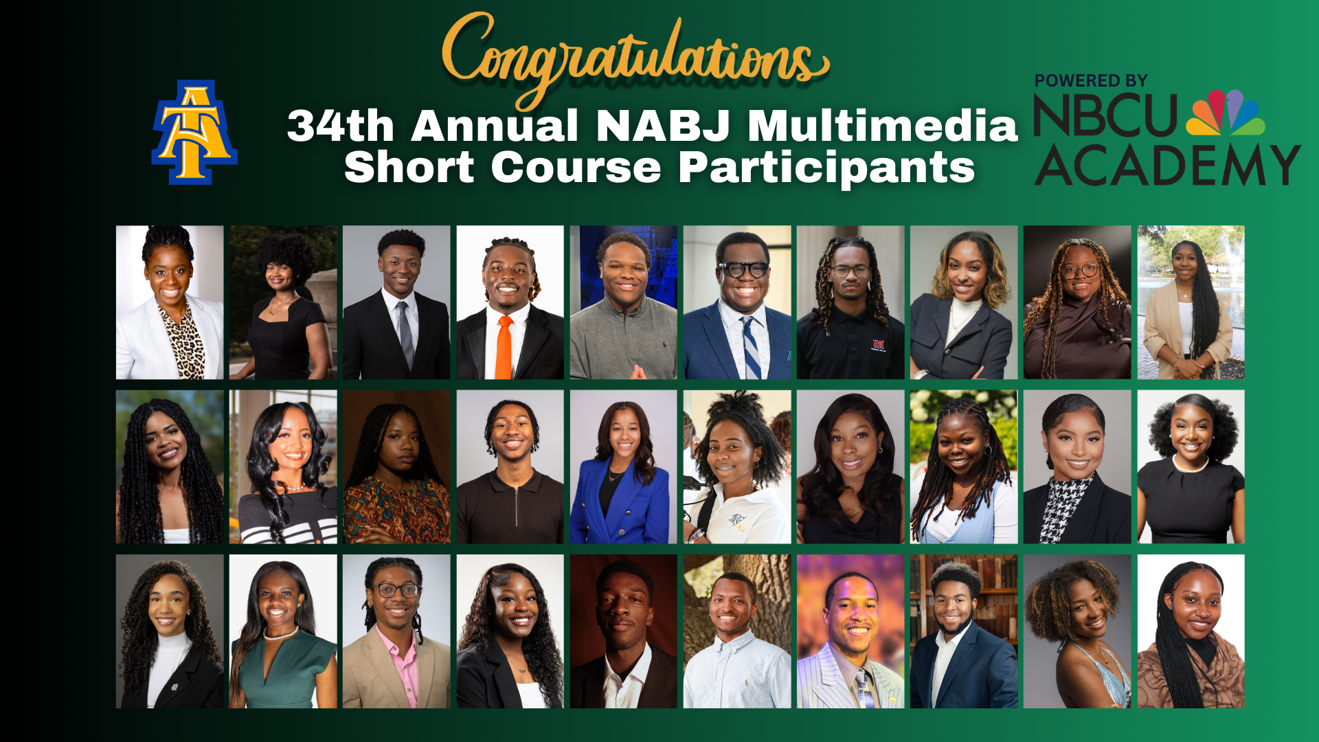 NABJ congratulates our 34th Annual NABJ Multimedia Short Course participants. Students representing universities and colleges nationwide will receive coaching and training from industry professionals to gain high-demand news and media industry skills on the campus of North Carolina A&T State University from March 11-14 in Greensboro, North Carolina. The program is powered by NBCU Academy.