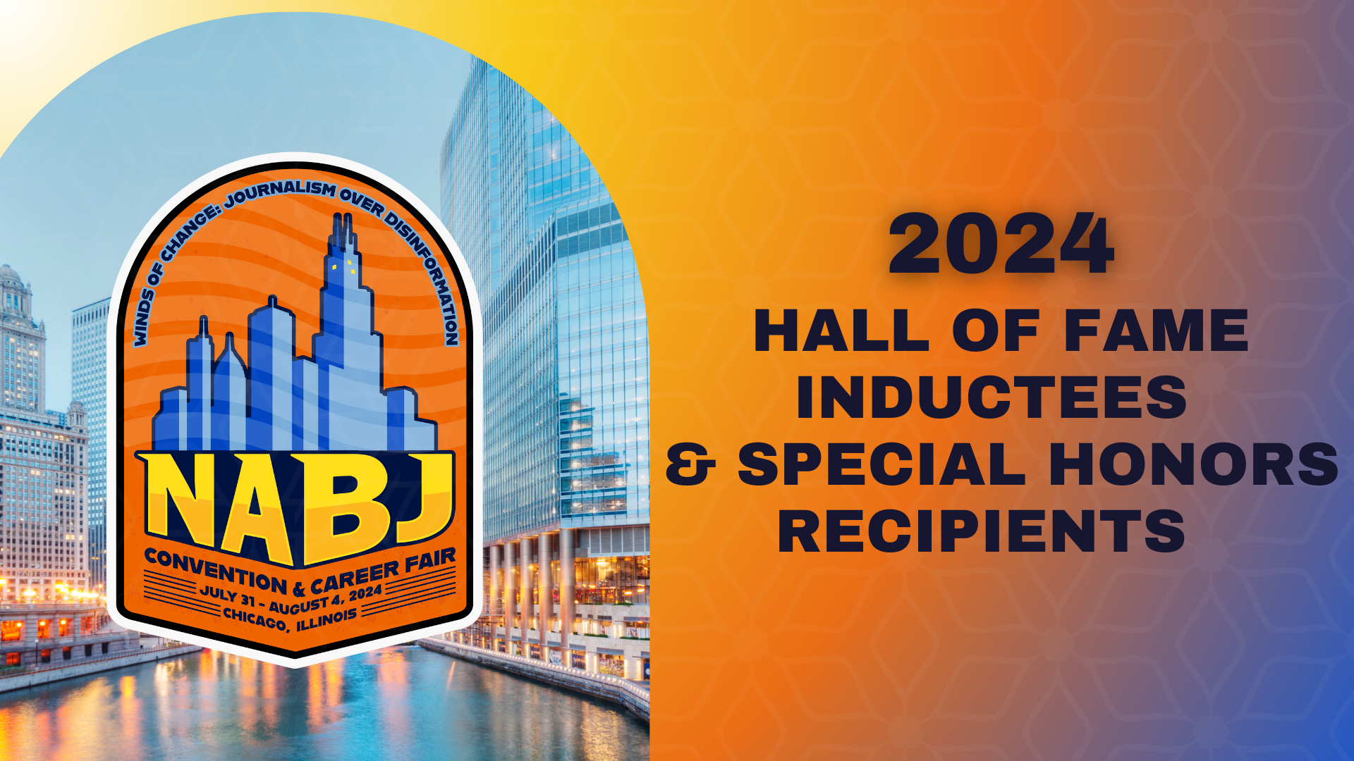 The National Association of Black Journalists (NABJ) is proud to announce its 2024 Hall of Fame inductees and 2024 Special Honors recipients.